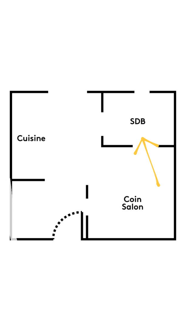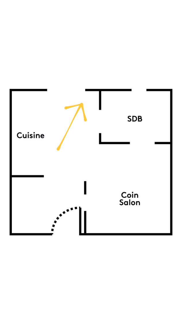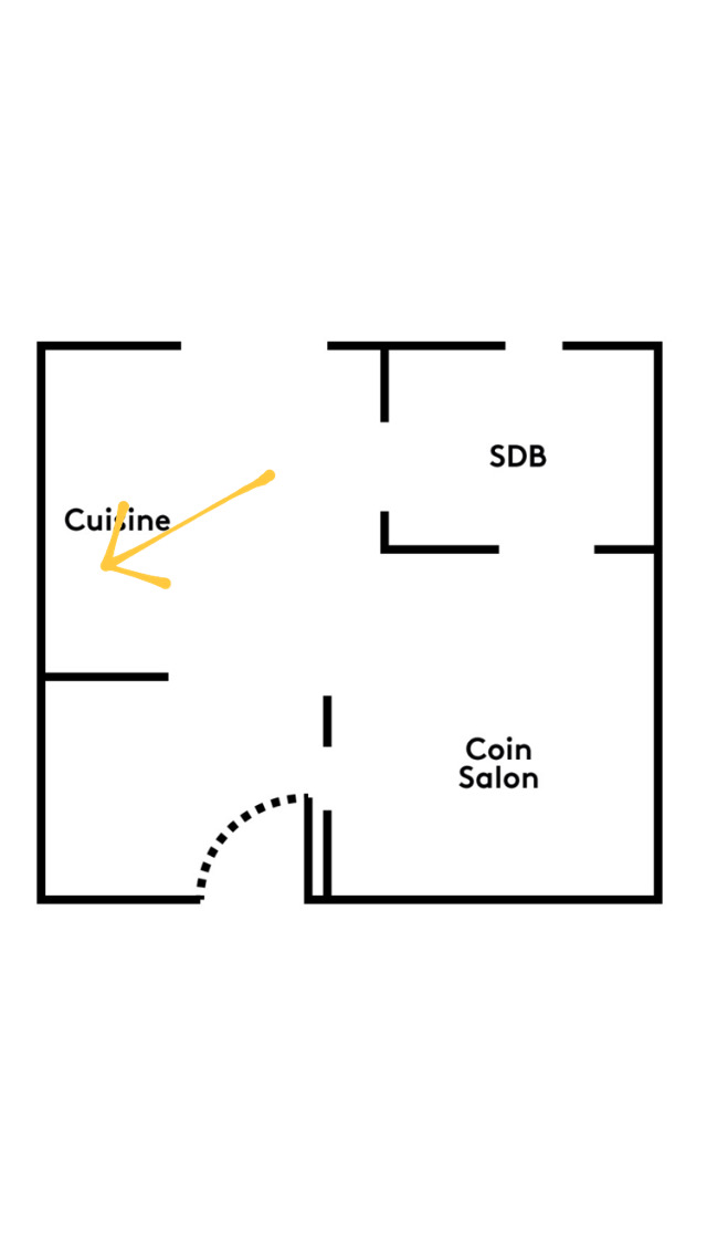 Vue de côté de la cuisine depuis l’espace salon/nuit. On y a même installé un four ! Qui a dit qu’un appartement étudiant ne pouvait pas être superbement pensé ?