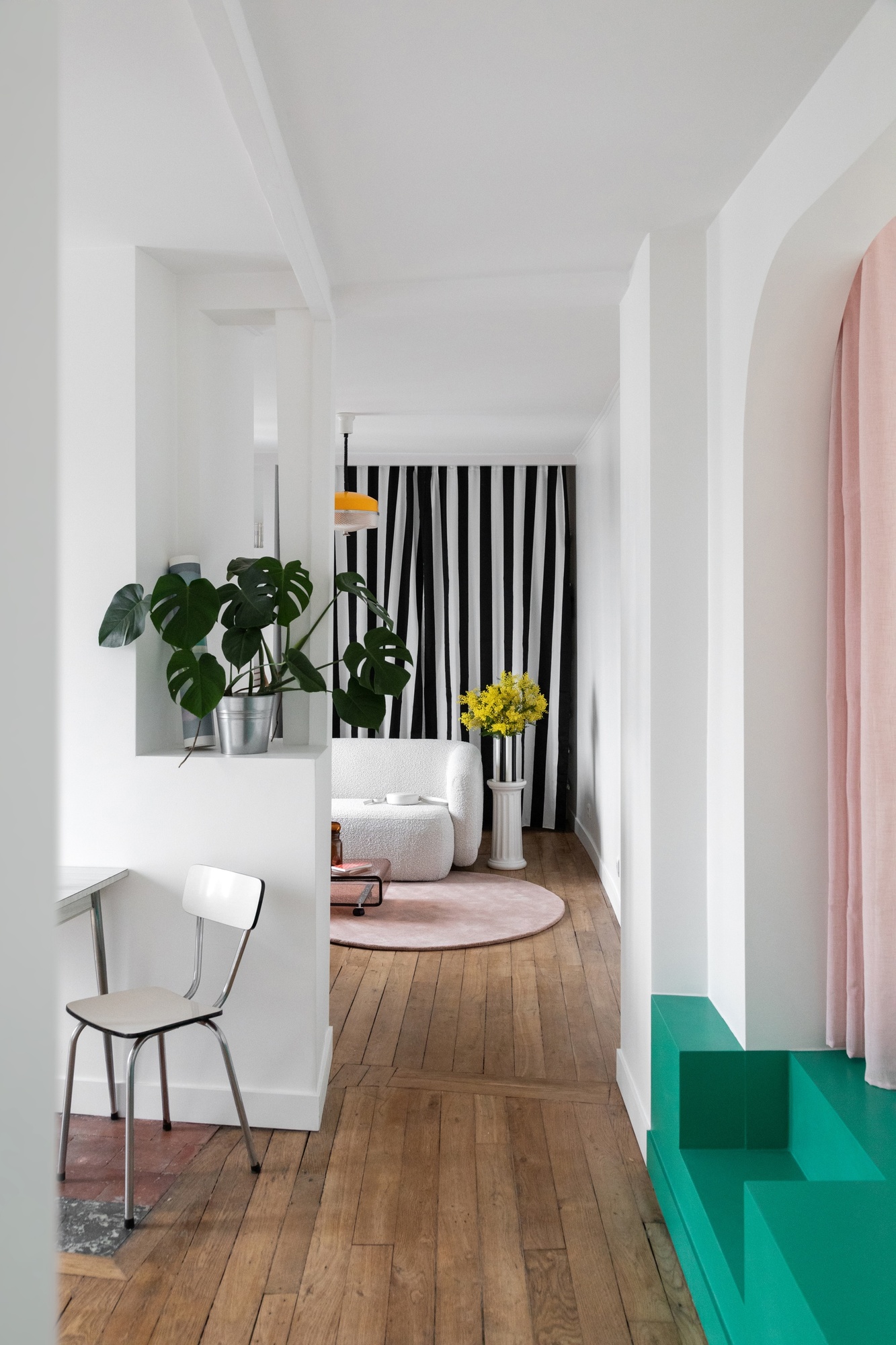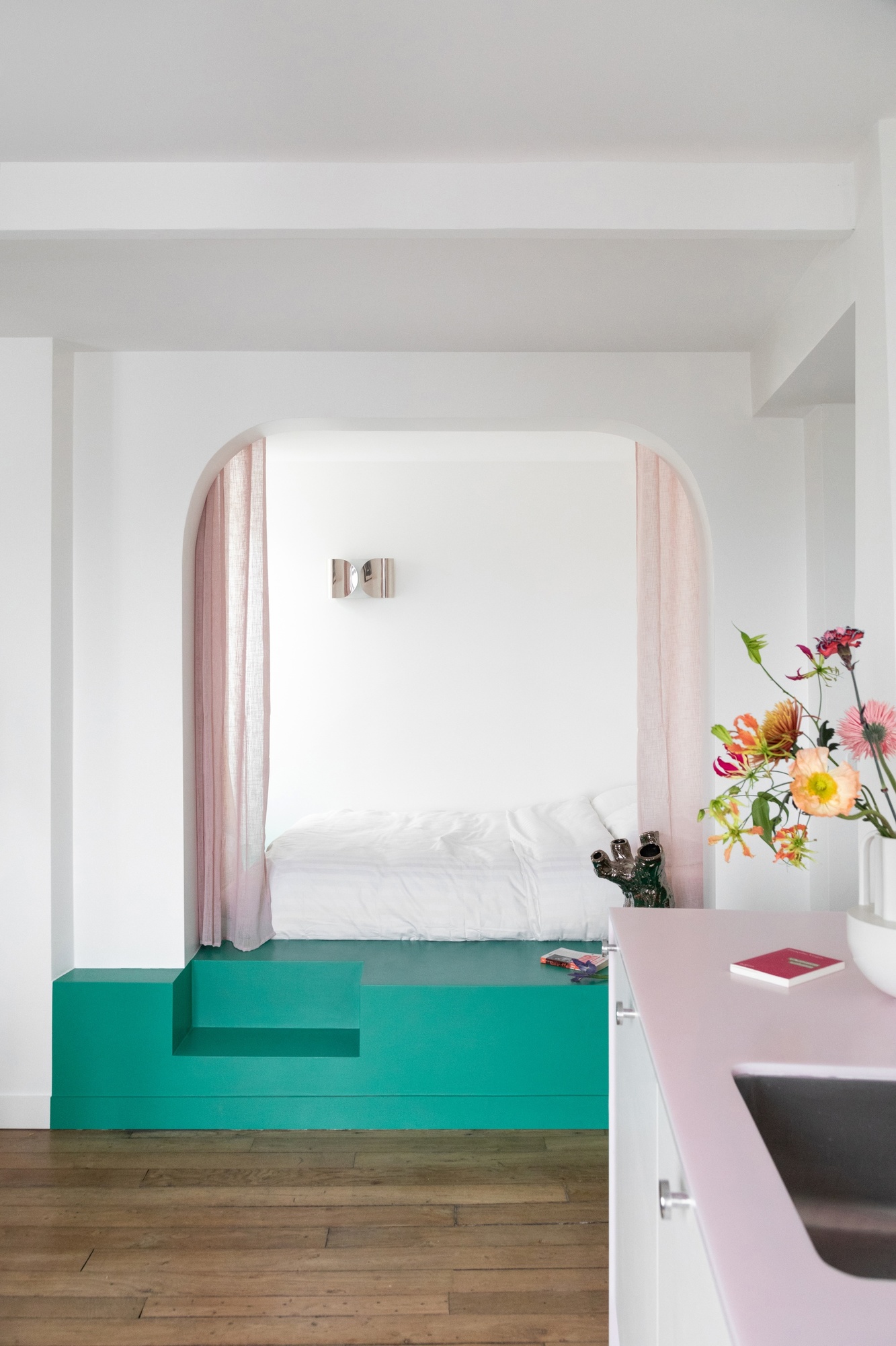 Accueil » Reportages » Un studio mis sur un piédestal : 30 m² tout en couleurs à Paris