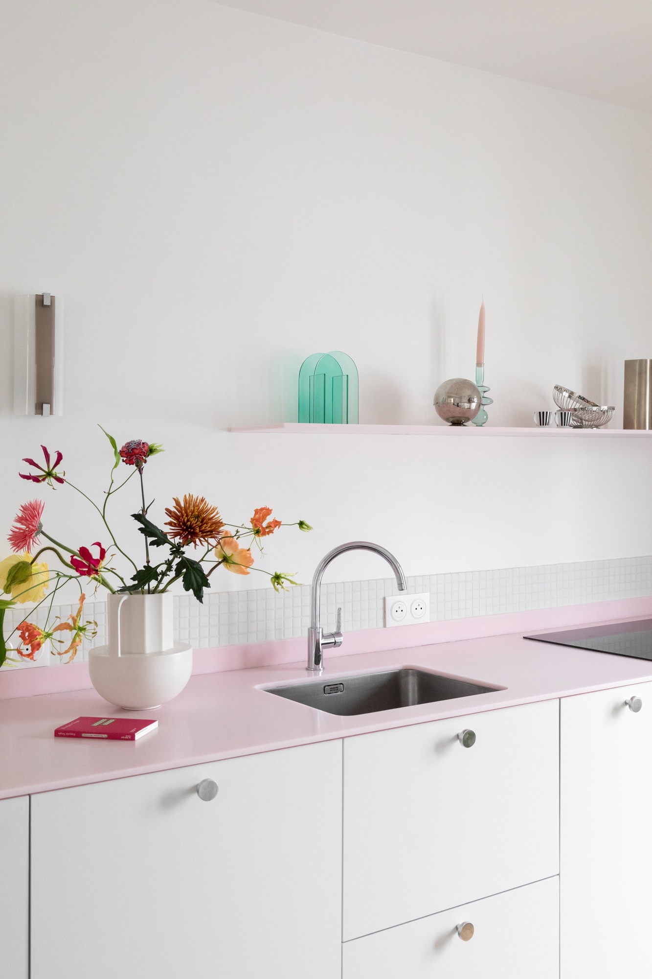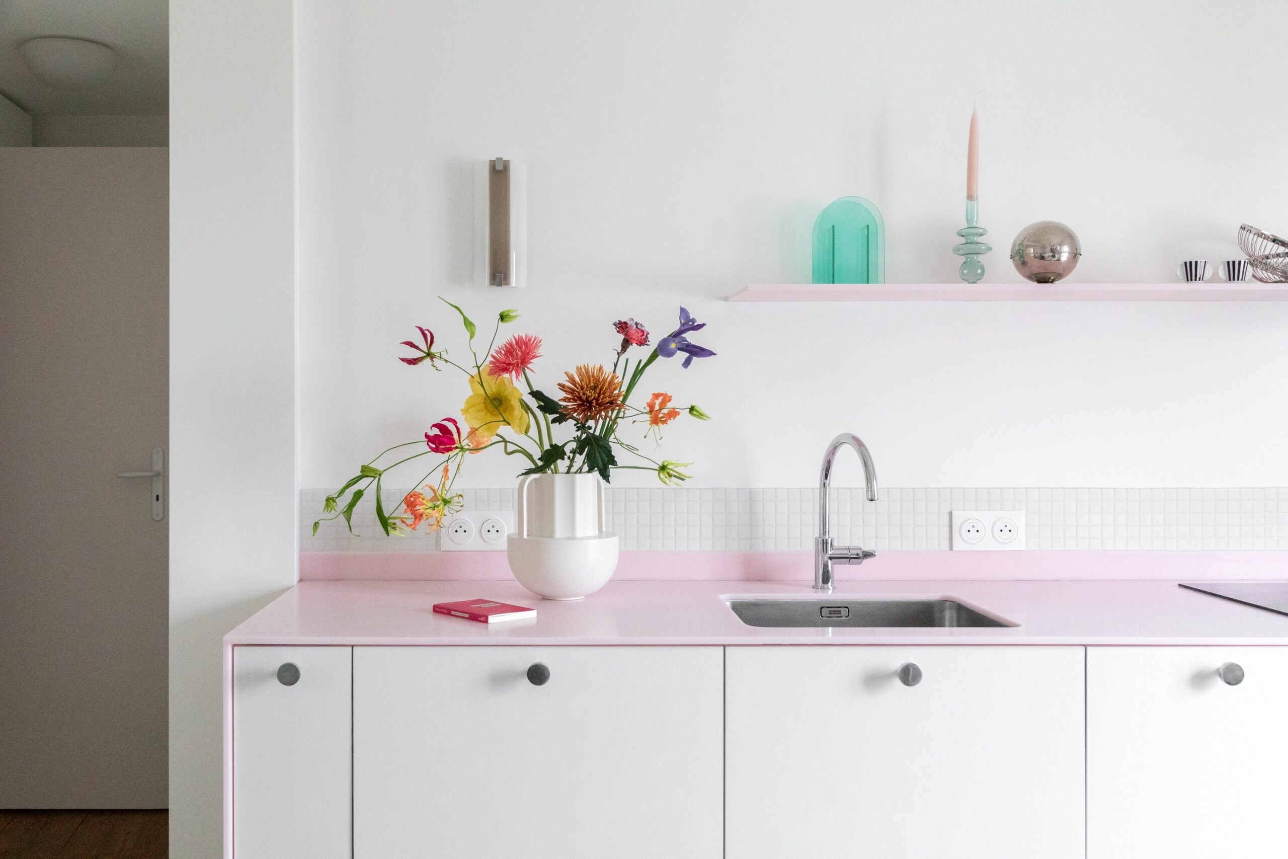 On craque pour le plan de travail HI.MACS Europe aux délicieux accents pop.