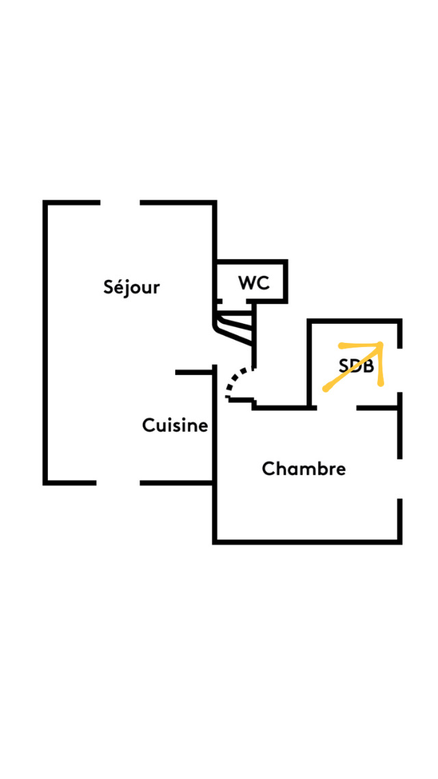 On accède à la salle de bains par la chambre. Pas de porte pour séparer les deux espaces. Mais une superbe arche, créée par l’architecte.