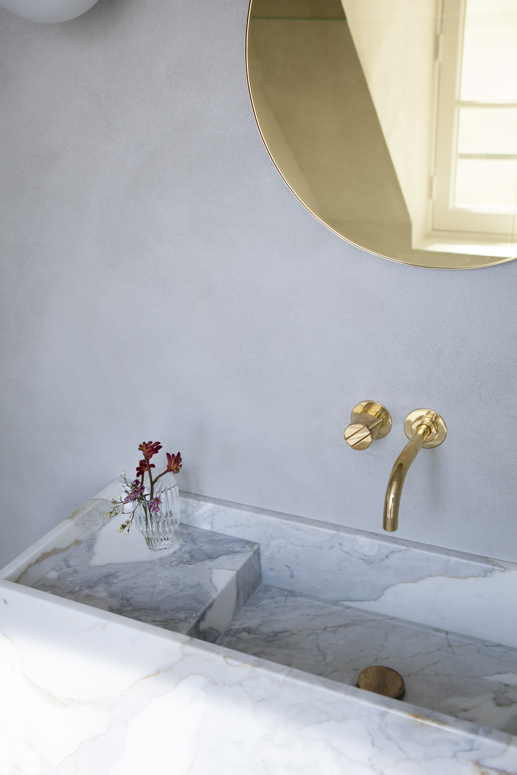 Et il y a même une baignoire, en marbre évidemment. Et bien sûr, quelques touches de laiton !