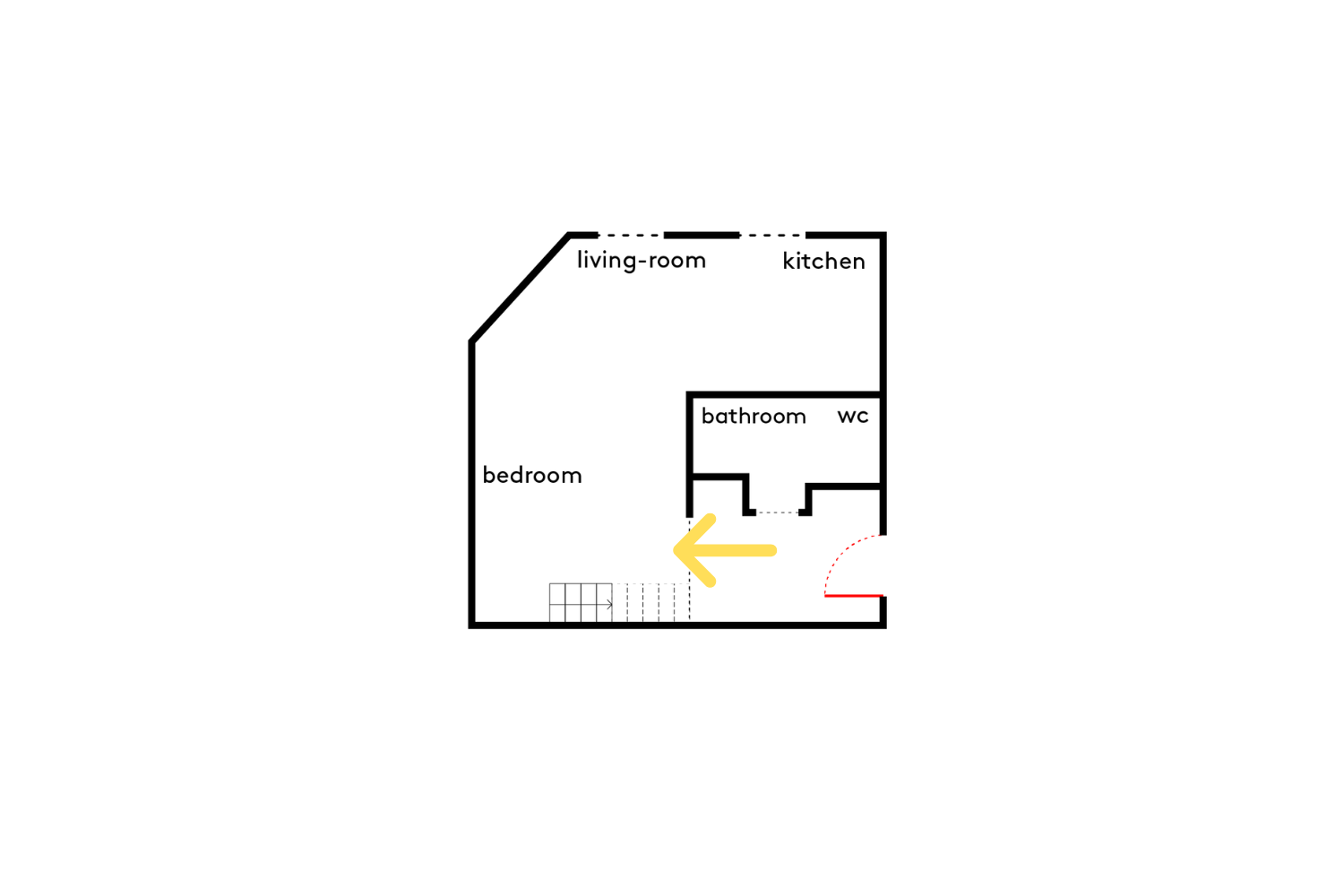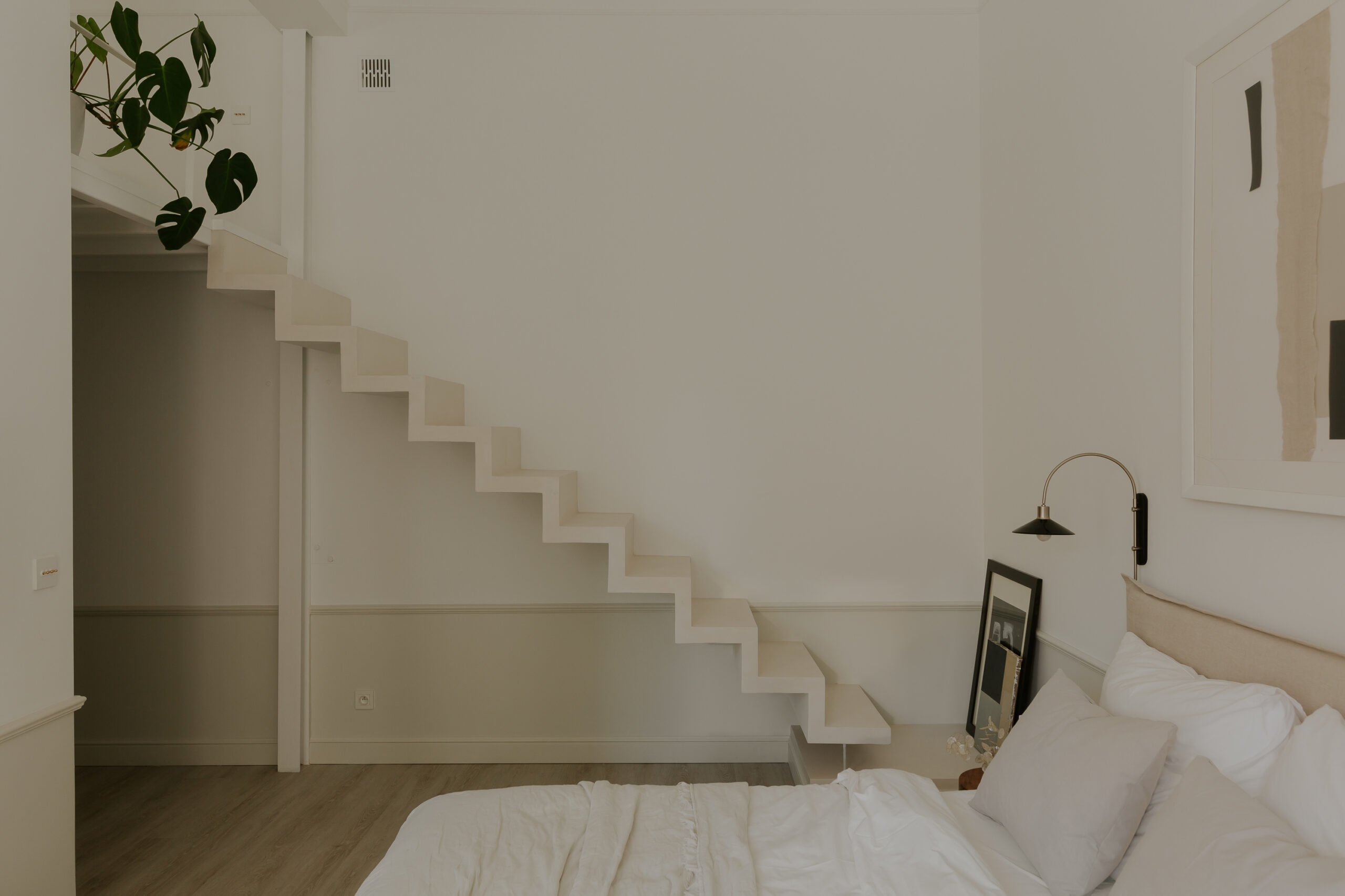La propriétaire tenait à aménager une mezzanine afin d’exploiter la généreuse hauteur de plafond. Pour y monter, pas question de lui parler d’échelle ! Elle a opté pour le confort d’un escalier.