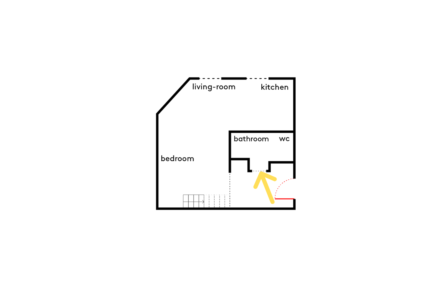 Sitôt la porte d’entrée passée, apparaît sur la droite la salle d’eau, qui donne le ton avec sa robinetterie en laiton et ses miroirs à bords arrondis. Classique et contemporain pactisent ici, pour un effet rétro-minimaliste des plus réussis.