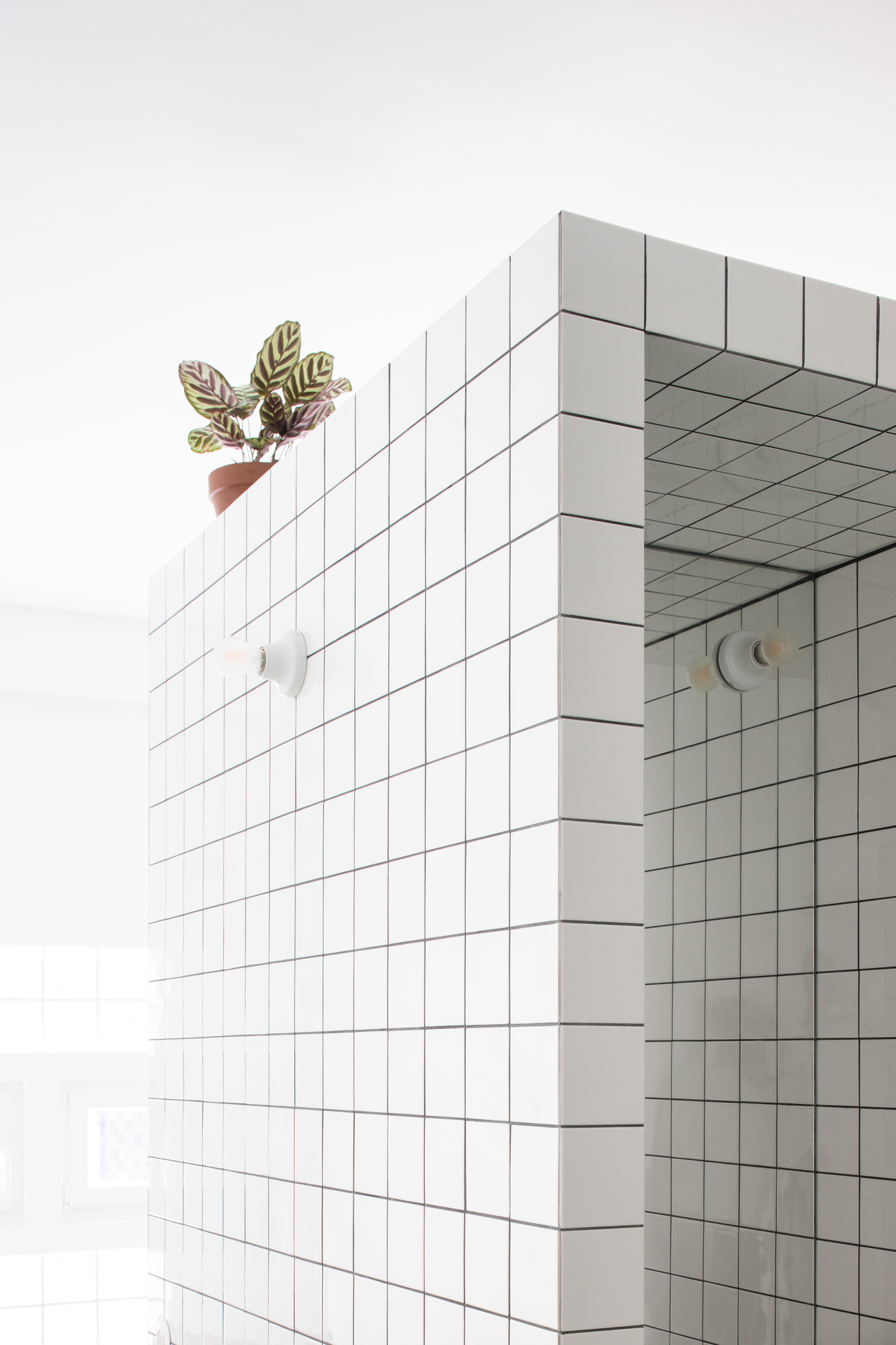 L’entrée marque les esprits avec une mise en abyme de carreaux blancs émaillés 10×10 cm.
