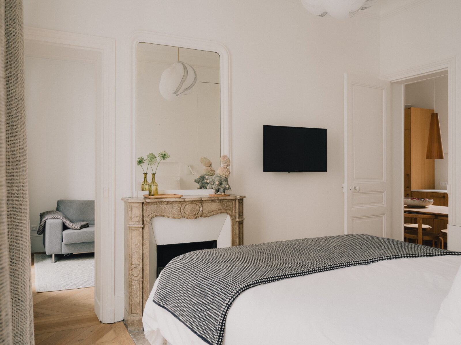 Vivant à New York la majeure partie de l’année, Todd et Benjamin rêvaient d’un pied-à-terre parisien à la fois accueillant et élégant. C’est en 2018 qu’ils découvrent cet appartement haussmannien de 53 mètres carrés dans le quartier Ledru-Rollin. « Nous ne recherchions pas l’appartement parfait mais un lieu avec du potentiel, expliquent-ils. Bien qu’usé, mal agencé, avec une cuisine étroite et un plan de salle d’eau peu pratique, ce bien regorgeait de promesses. »