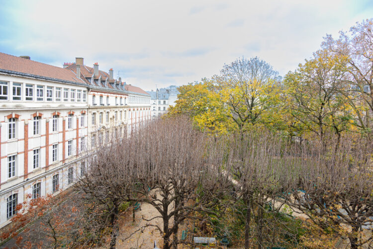 Vue imprenable sur le parc depuis le 5ème étage : une bulle de verdure à portée de main.