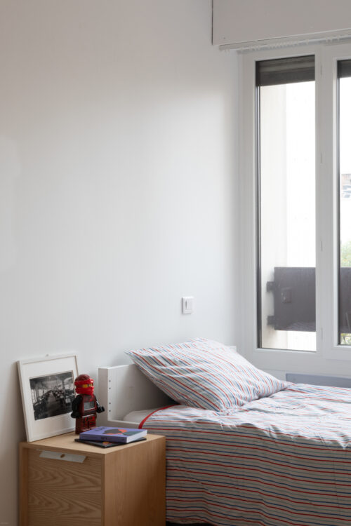 Et si le luxe, c’était l’espace ? Réponse sans appel pour la jeune femme : « Gagner 25 m² habitables nous a changé la vie. Chacun des garçons a son propre univers, son bureau, ses tiroirs… On les sent beaucoup plus concentrés et calmes depuis qu’ils ne font plus chambres communes. » Même constat du côté des parents : « J’ai vécu dans un appartement où dès que j’empoignais le sèche-cheveux, tout ce qu’il y avait autour s’écroulait faute de place attitrée. Quand on a des boulots aussi prenants que les nôtres, c’est quand même très agréable de ne pas avoir à chercher pendant des heures son pass Navigo. »