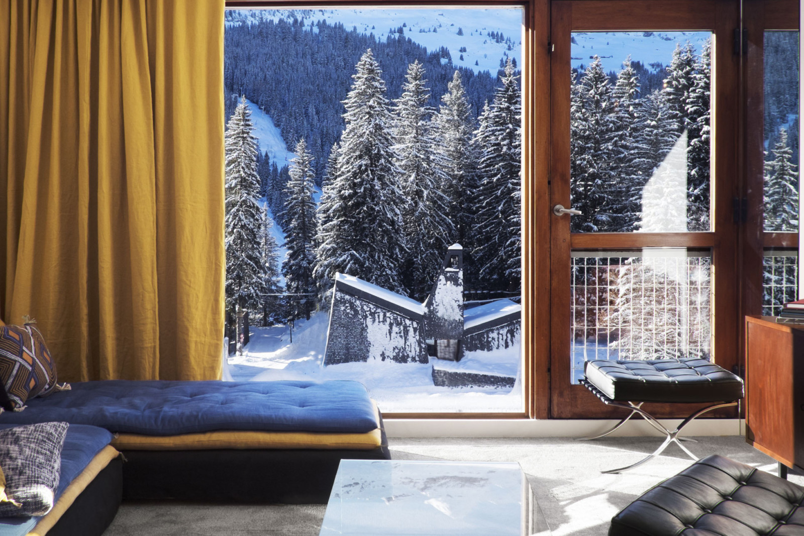 Bienvenue à Flaine avec son impressionnante architecture brutaliste. Ici le mythique immeuble Le Flaine, résume bien l’esprit de la station : osé, avant gardiste et intégré. Ce bâtiment accueille aujourd’hui un très bel hôtel. Mais continuons un peu plus loin vers la résidence Cassiopée.