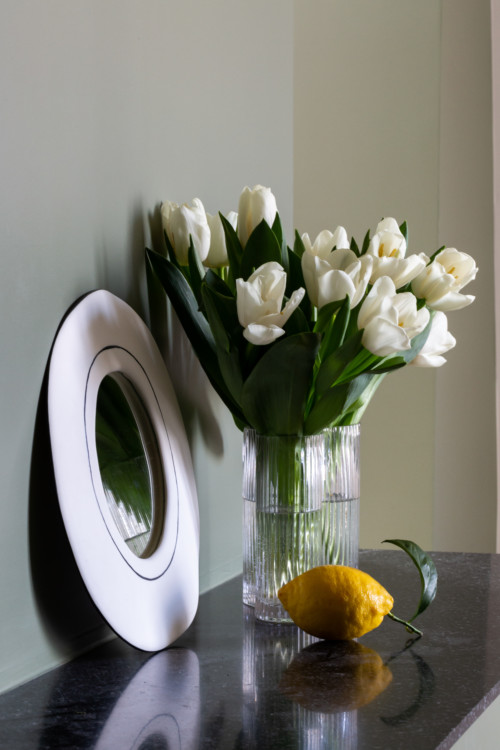 Pratique, le meuble d’entrée permet de jeter un dernier coup d’oeil dans le miroir avant de filer ou d’y déposer des fleurs fraîches en rentrant, c’est selon !