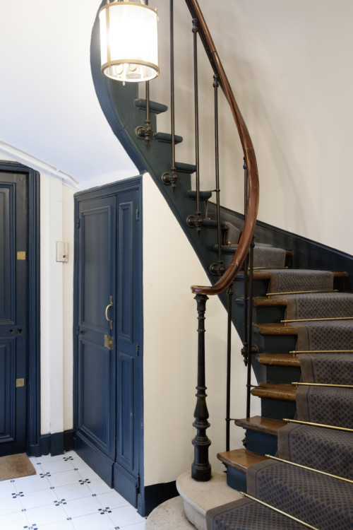 Et voici qu’ils arrivent dans l’appartement que nous visitons aujourd’hui. Situé à la frontière du 10ème et du 9ème arrondissement, juste à côté de l'église Saint-Vincent-de-Paul. Autant dire qu’il y avait du travail. Imaginez : un appartement fait de chambres de service mises bout à bout dans les années 70 et qui n’avait pas bougé depuis. Mais Louis et Capucine n’en sont plus à leur coup d’essai. A tel point que Louis en a fait son métier. Après l’informatique, il cherchait quelque chose de plus concret. Fort de son apprentissage sur le tas, il a fondé Costaud Rénovation, une entreprise générale 2.0 partenaire de