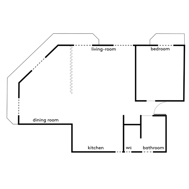 Au troisième étage de cet immeuble d’angle des années 1920 aux allures de château, ils découvrent un appartement compartimenté typique de l’époque. « Après l’avoir mis à nu, nous avons privilégié sa fonction sociale, en réunissant la salle à manger, le salon et la cuisine en une pièce de 45 mètres carrés », raconte Carlos.