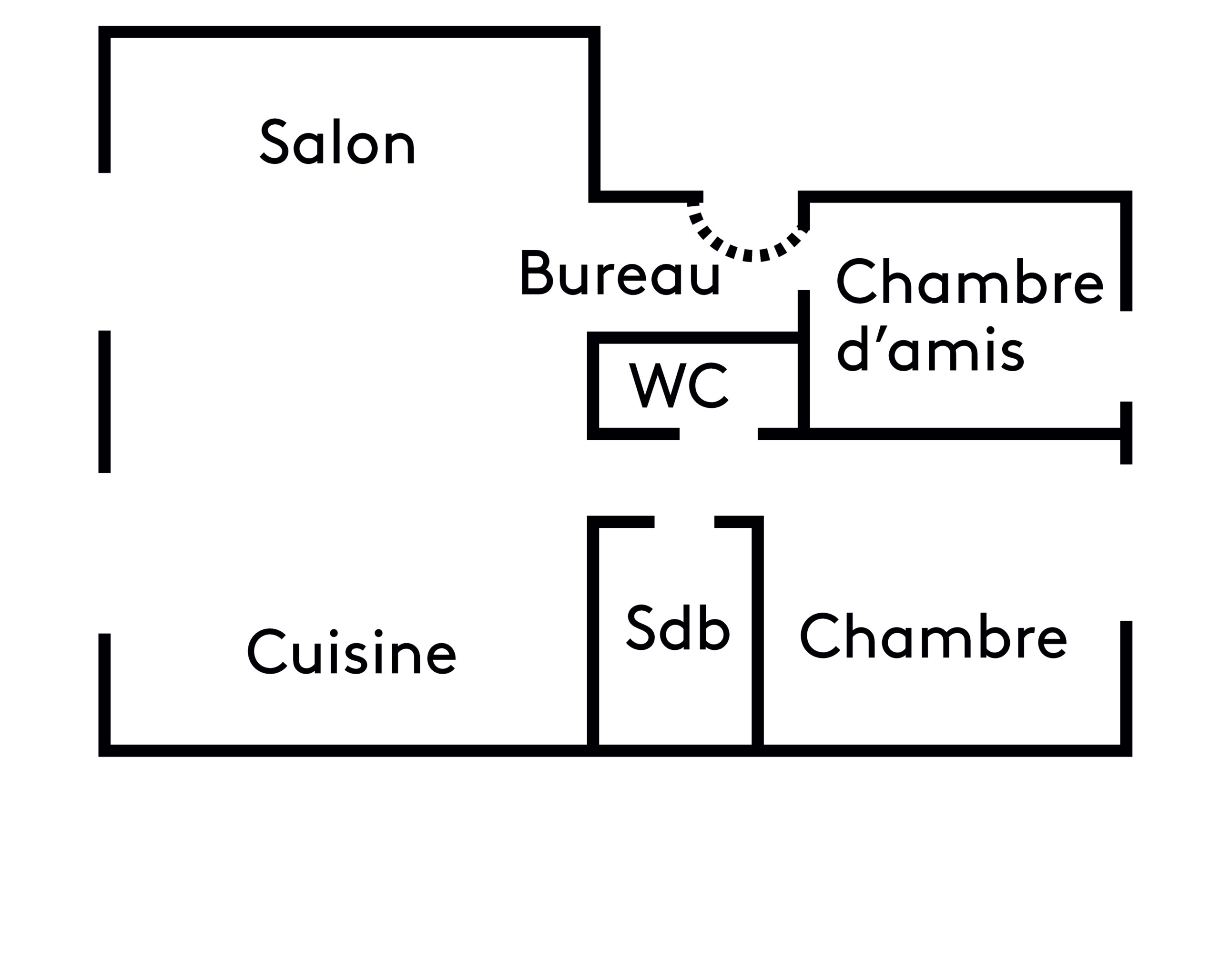 Le paysage urbain dans ce quartier est très différent du reste de la ville, avec beaucoup d'ensembles qui datent des années 50. C'est au septième et dernier étage de l'un d'eux, qu'ils ont déniché leur futur appartement. À l'origine, il y avait là 53 m² cloisonnés et étriqués avec une cuisine indépendante du salon-salle à manger. Après quelques mois de travaux, il y a toujours 53 m² mais avec une toute autre atmosphère ! Plus lumineuse, plus contemporaine, sans renier l'architecture originelle. La nouvelle distribution suit naturellement l'orientation géographique de l'immeuble. Le séjour qui rassemble le salon, la salle à manger et la cuisine, est orienté plein Sud. Il bénéficie donc de la lumière et de la chaleur. La chambre principale et la chambre d'amis sont elles orientées au Nord pour la fraicheur propice au sommeil. Ces deux parties sont reliées par deux petits couloirs astucieusement aménagés.