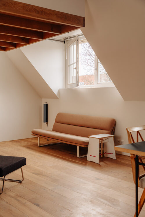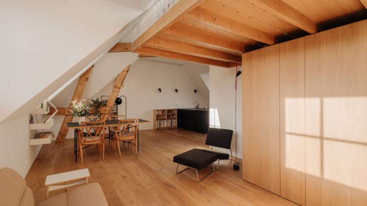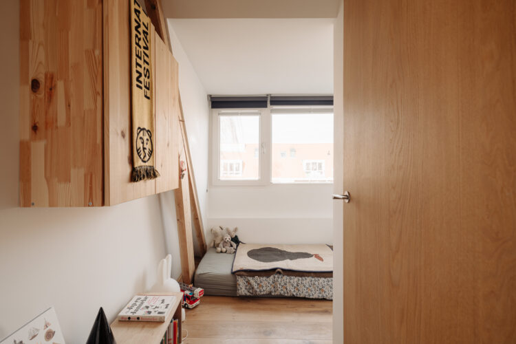 C’est à Amsterdam, dans le quartier populaire de Transvaalbuurt, que Michiel Hilbrink et sa compagne Dongyoung Lee découvrent presque par hasard cet appartement de 60 mètres carrés niché sous les toits d’un immeuble en briques datant de 1924. Sur les photos de l’annonce, rien de très prometteur. Mais lors de la visite, le déclic : « On a tout de suite senti le potentiel ! Plus grand, plus haut de plafond que tout ce qu’on avait déjà visité. Avec un esprit loft évident. Il fallait se lancer sans trop réfléchir », confie l’architecte qui a depuis revendu le bien.