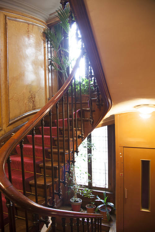 Quel contraste ! L’escalier rococo et un brin suranné n’a rien à voir avec l’appartement que nous allons visiter. Non, vraiment rien.