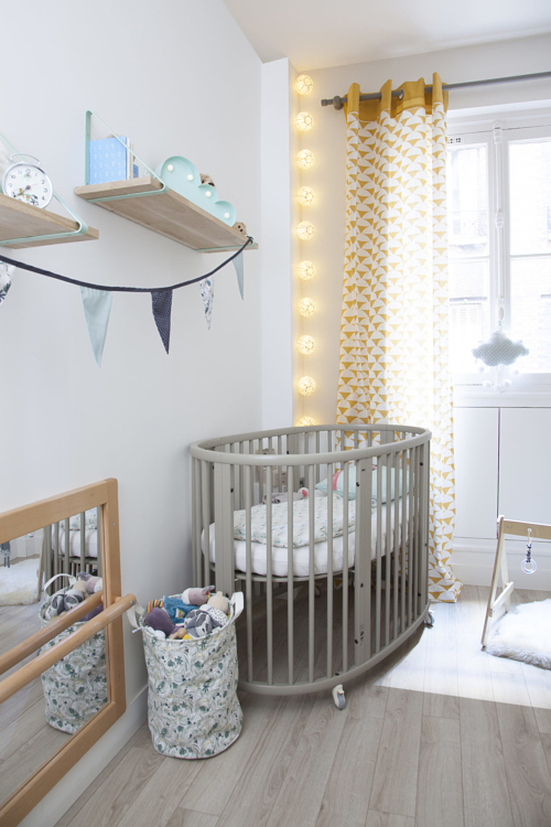 Pour Albi, 8 mois, un joli berceau évolutif Stokke pour faire de beaux rêves et un miroir Montessori pour admirer ses premiers pas.