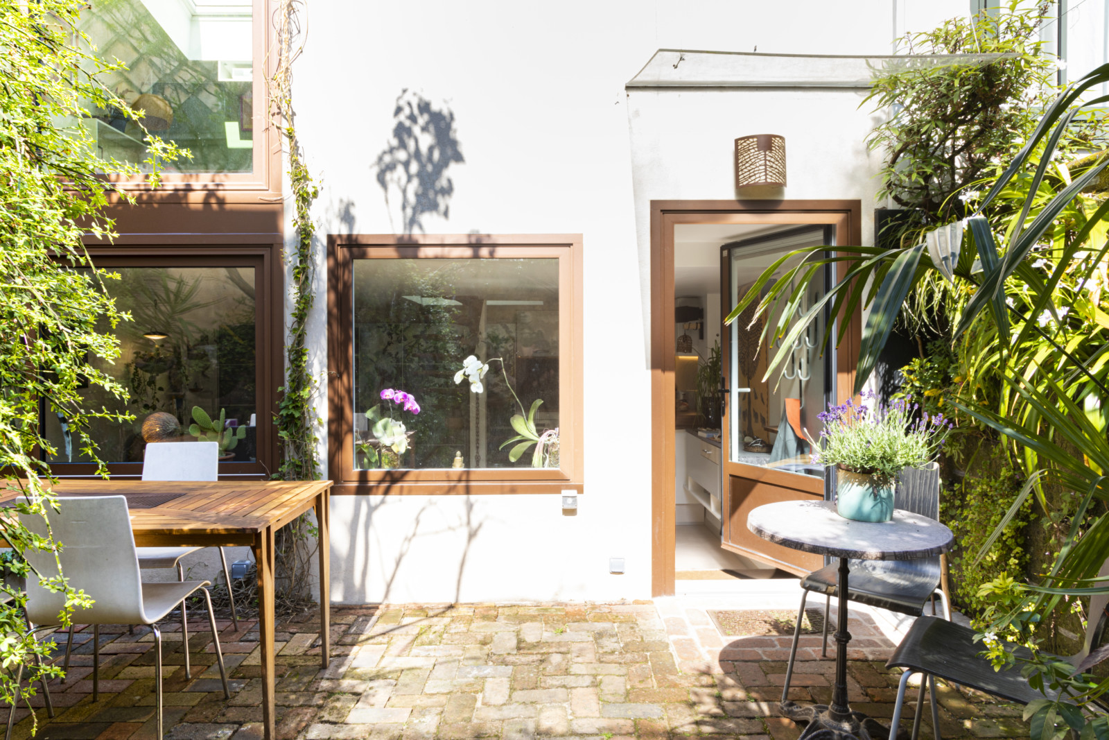 Tout de suite, ça m’a fait rêver. Il y avait un petit jardin, c’était calme tout en restant central, c’était un environnement d’artistes, c’était inespéré”, raconte le designer. La bande se partage le lot, et pour 100 000 francs chacun (26 000 euros), les voilà propriétaires d’un bâtiment où tout est à refaire. Le jeune homme transforme l’ancien atelier en duplex, plante un lilas, et fait de l’appartement son port d’attache pendant plus de trente ans, avant d'à nouveau le rénover il y a quatre ans.