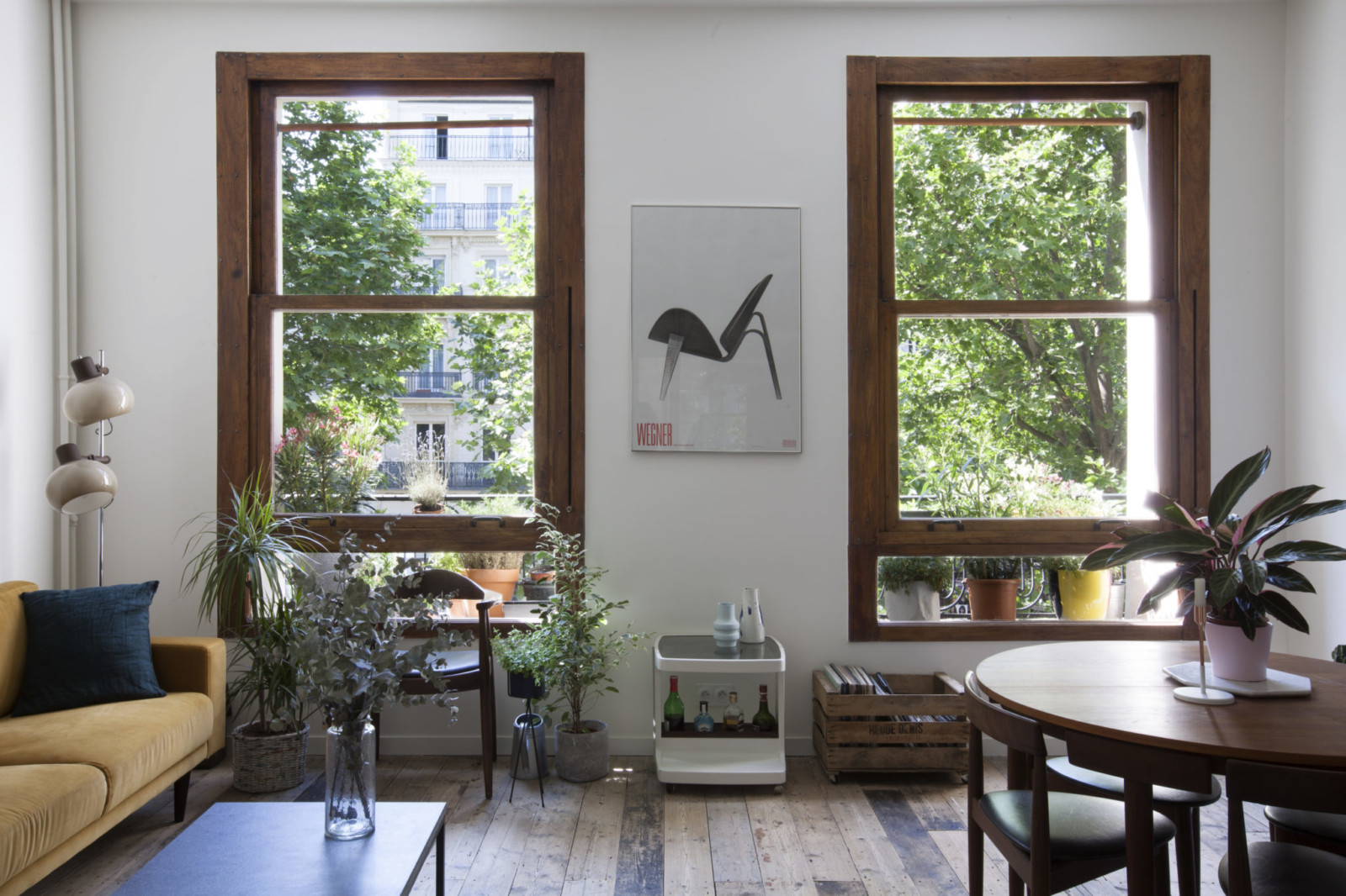 La réponse apportée par leur architecte satisfait toutes ces demandes. En capitalisant sur l'existant, une surface lumineuse sans cloison avec un parquet fait en planches de quai de déchargement récupérées par l'ancien propriétaire, Mélanie Lallemand Flucher a fait de cet endroit un intérieur surprenant et unique en son genre. La visite commence par l'entrée, un rectangle qui s'enfonce dans l'appartement et qui laisse place à d'autres rectangles qui s'élargissent : La cuisine avec l'îlot central, l'espace consacré aux repas et enfin le salon.