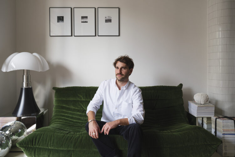 Dans le séjour, un cliché pris en 2019 par la photographe Kate Shanasy sur la plage de Monterosso al Mare, village des Cinque Terre. Sous les parasols d’aspect rétro aux rayures vertes et orange, des estivants observent les baigneurs s’ébrouer dans les eaux de la mer Ligure… L’image représente bien le cocon de Jean-Malo et Victor : un deux-pièces rénové par leurs soins entre 2021 et 2022 où flotte un petit air de vacances. Et où rien n’est laissé au hasard.