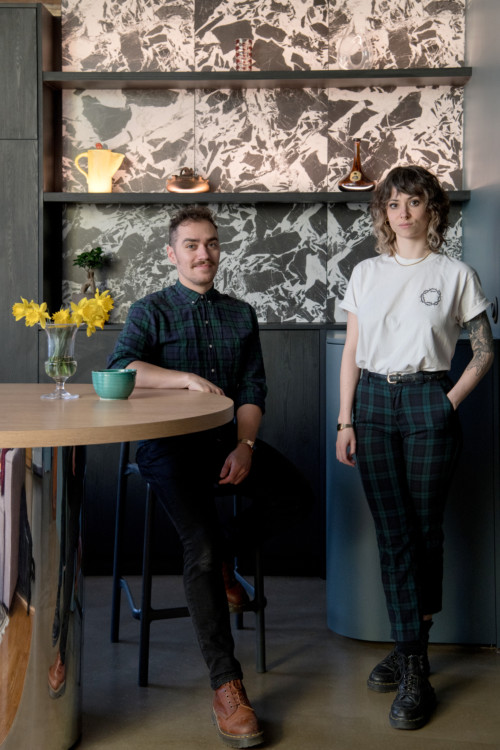 "Notre volonté était de conserver les matériaux existants et de leur redonner vie, tout en les faisant contraster avec des éléments plus contemporains, en jouant avec des aplats de couleurs et de textures", explique Célia.
