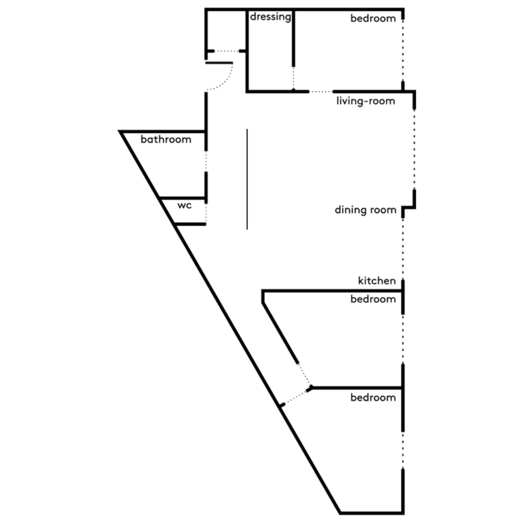 Pièces étriquées, matériaux « pauvres » caractéristiques des années 1970 et cloisons en surnombre : l’endroit n’invite pas spécialement au rêve lorsque Paola et son mari le visitent. « J’étais enceinte, nous étions très attachés au 18e arrondissement où nous vivions déjà, nous avions besoin de davantage d’espace… L’appartement nécessitait certes d’être entièrement rénové mais nous avons d’emblée été séduits par son exposition plein sud, sa luminosité incroyable et, surtout, les bonnes ondes qui s’en dégageaient. »