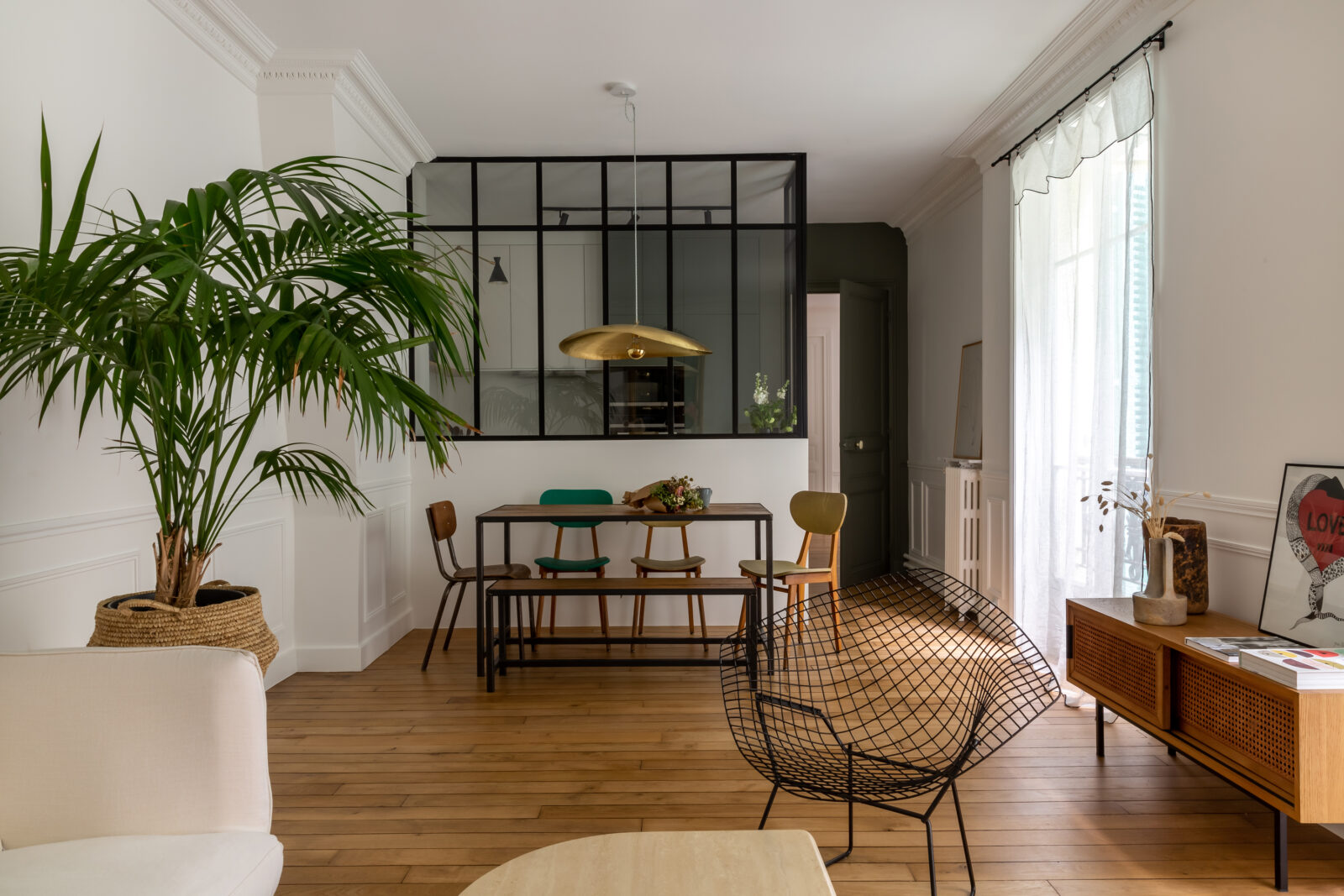 Tout était réuni pour la visite de cet appartement sur le boulevard Ornano. C’était le matin, il faisait un grand soleil, on a poussé la porte de la façade haussmannienne, on est arrivé dans la cour et c’était le dépaysement total : le calme, la déconnexion de la vie parisienne… On retrouvait un peu ce qu’on avait dans le 11e avec en plus l’impression d’être en Provence ou en Italie dans les années 50 ! Et ensuite, on a eu un super bon feeling lors de la visite. La chance qu’on a eue, c’est qu’on était les premiers et qu’on a tout de suite fait l’offre. »