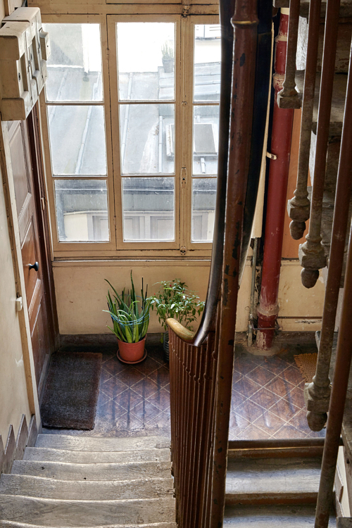 À quelques minutes du Canal Saint-Martin, perché au dernier étage d’un immeuble sur cour de la fin du XIXème siècle, cet appartement, avec ses grosses poutres blanchies et ses tomettes anciennes, diffuse un esprit campagne tout en raffinement. Ce ne fut pas toujours le cas !