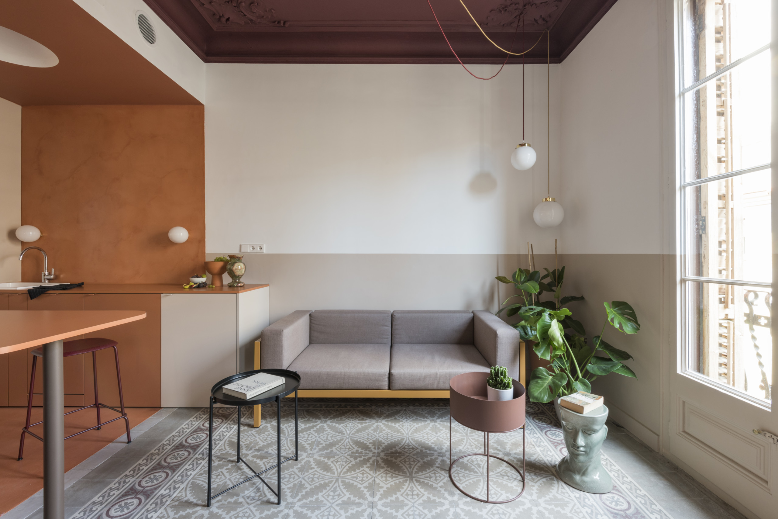 C'est l'histoire d'une renaissance. Et d'un projet de vacances qui a failli virer au cauchemar. Marta est originaire de Barcelone mais elle a fait sa vie aux Etats-Unis, à Coronado en Californie. Elle rêve d'une maison de vacances pour sa famille dans sa ville natale. Elle jette son dévolu sur un bel appartement de style Art Nouveau, l'un des styles les mieux représentés à Barcelone, dans le quartier branché de El Born. L'appartement est beau, mais il a besoin d'un gros rafraichissement. Comme Marta est architecte d'intérieur, elle décide de s'occuper du projet avec l'aide d'un entrepreneur. Elle compte d'ailleurs dans ses références les réalisations de l'agence Colombo and Serboli dont elle apprécie le travail. Mais la veille de l'inauguration, alors que tout était terminé, une explosion ravage l'appartement. Il faut tout recommencer. Et le budget qui avait été provisionné pour les travaux a quasiment fondu. Bref, le cauchemar. C'est peut-être la fin du rêve barcelonais de Marta. Trop de temps, d'énergie et de moyens engagés. La famille repart en Californie. Mais peut-on renoncer à Barcelone ? Un an plus tard, Marta décide de contacter l'agence Colombo and Serboli et de leur confier la rénovation. Cette fois ci, elle suivra le chantier à distance. Le brief est simple : faire quelque chose de radicalement différent pour éviter les mauvais souvenirs. En restaurant et en mettant en valeur les éléments historiques. Le tout avec un budget très économique.
