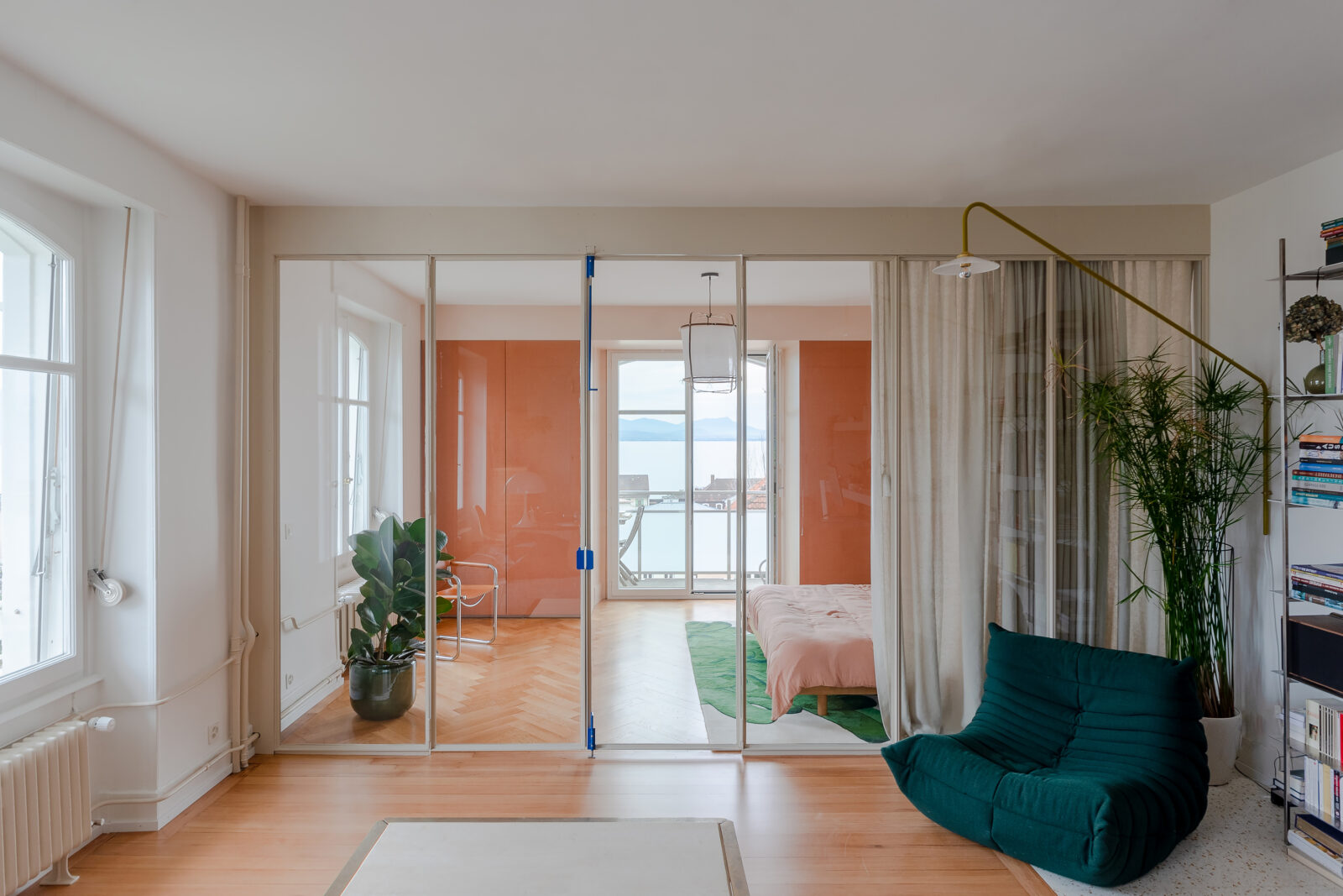 « L’organisation de ce 3 pièces se caractérisait par son corridor borgne, qui occupait plus de 10 m² et desservait des espaces très compartimentés, avec une cuisine perdue à l'extrême opposé du séjour ! Dans cette configuration, l’appréhension du lac était reléguée à un moment anecdotique, au bout du couloir, dans le séjour », se souvient Alan Hasoo, de l'agence Rocades* architectes, en charge du projet.