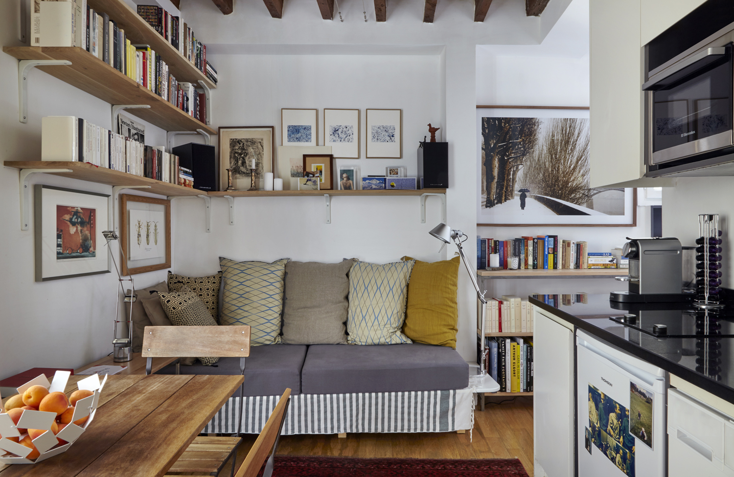 Lorsque le propriétaire acquiert cette surface de 20 m², ce qui lui plaît, c’est sa situation : au calme, dans une petite impasse pavée baignée de lumière, grâce à la faible hauteur des immeubles alentours. Il ne manquait plus qu’une petite rénovation pour en faire un repaire idéal.