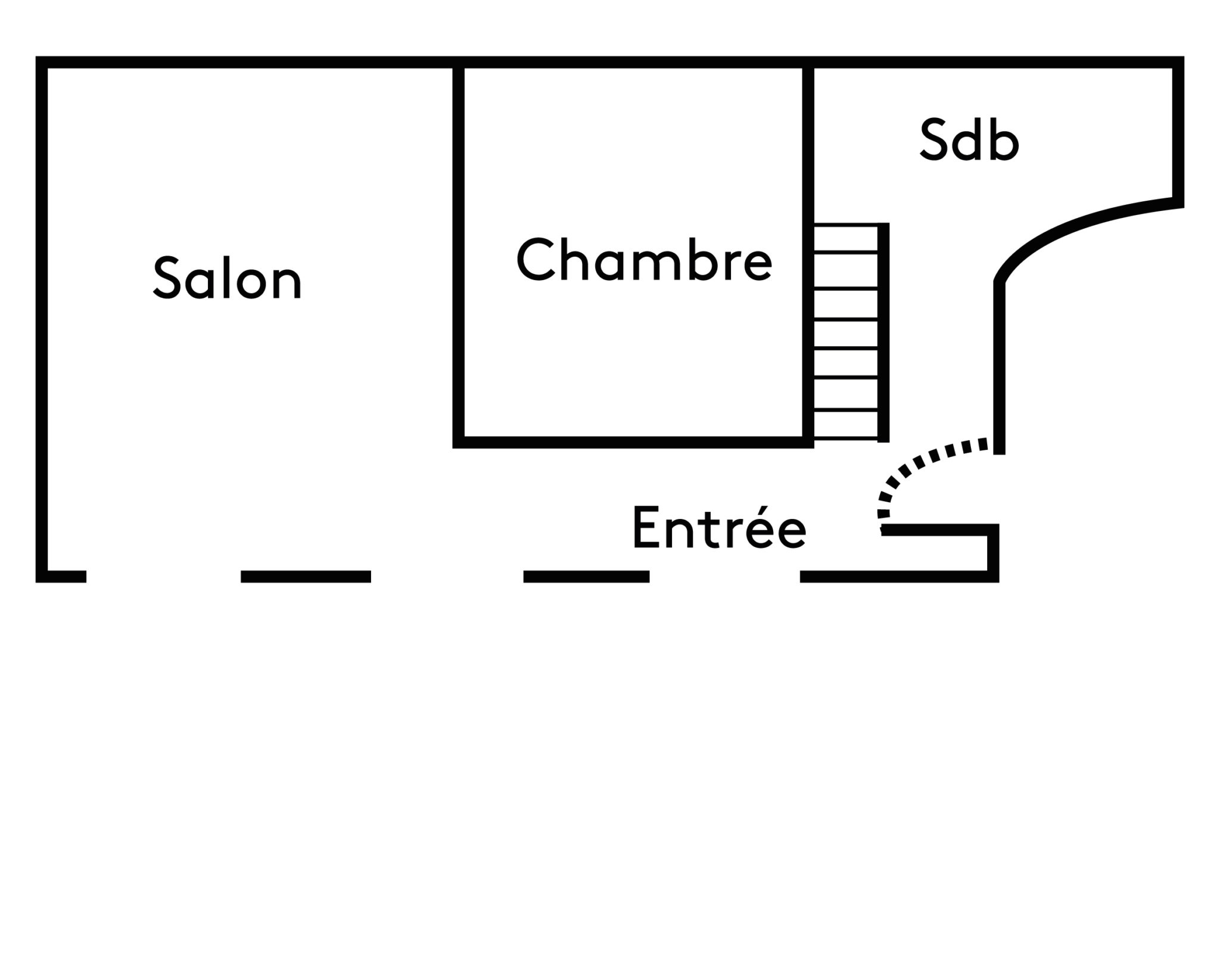 Les murs n'étant pas extensibles, et le sol plutôt compliqué à creuser, c'est vers le haut qu'elle est allée chercher de l'espace ! Une habile dépose des combles a considérablement ouvert le volume, ce qui a permis de créer une chambre en mezzanine au-dessus de la cuisine et de donner une belle hauteur sous plafond au séjour. La pose d'un velux apporte une lumière zénithale dans tout l'appartement et offre aux habitants couchés dans leur lit une vue imprenable sur le ciel !