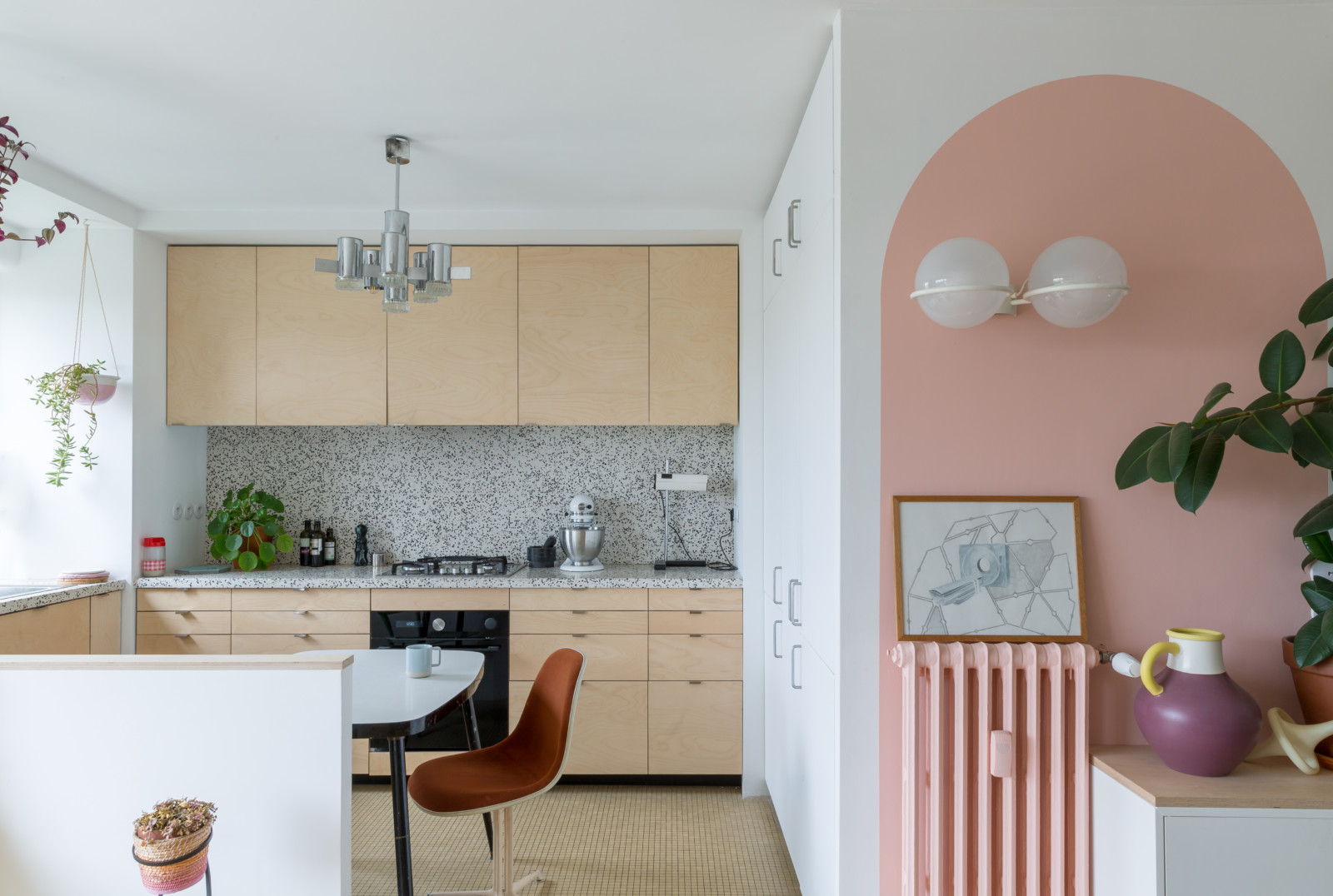 L'appartement que Sara et Guillaume visitent il y a deux ans à Nanterre, date des années 70. Le temps a passé et les couches de peinture, de lino, de moquette ou de carrelage également. On ne peut pas vraiment dire que l'appartement est "dans son jus", mais plutôt qu'il n'a plus de jus du tout. Plus de peps, plus d'énergie... Le talent de ce couple de créatifs ne sera pas de trop pour révéler les qualités de ce bel endormi. Après de nombreuses expériences dans l'univers de l'art contemporain et du design, Sara, membre du duo de designers d'intérieur PROMO, a récemment créé Planplan, un site de fabrication de plans de travail sur mesure. Son compagnon, Guillaume, est ingénieur et architecte. C'est donc un duo parfaitement aguerri qui va conduire la rénovation des ces 65 m². L'objectif est clair : offrir à cet espace une véritable cure de jouvence en respectant les grands parti-pris d'origine tout en y déployant un goût pour les couleurs, les matériaux et le mobilier vintage.