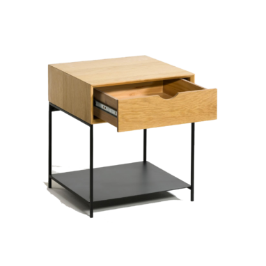 Ce chevet, inspiré des années 50, marie harmonieusement la chaleur du bois et la précision du métal.