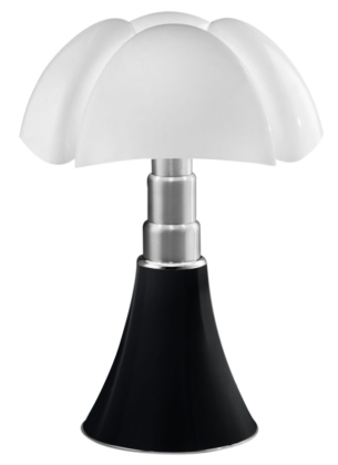 Lampe de table ou de sol Pipistrello composée d'une base métallique tulipée, d'un bras télescopique en acier inoxydable brossé et d'un diffuseur en méthacrylate blanc opalin.Cette lampe culte designée en 1965, doit son nom à sa ressemblance avec une chauve-souris, elle délivre une délicate lumière diffuse. Grâce à son pied télescopique, vous pourrez ajuster sa hauteur selon vos envies (de 66cm à 86cm)