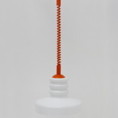 Une suspension sculpturale en opaline dans un esprit très 70's. Son système de suspension monte et basse permet d'ajuster la hauteur du luminaire à tout moment. Le verre opalin est matériau noble issu des savoir-faire verriers d'Europe de l'Est et diffuse un éclairage doux et homogène.